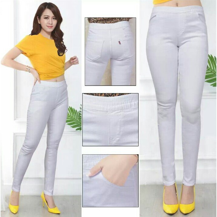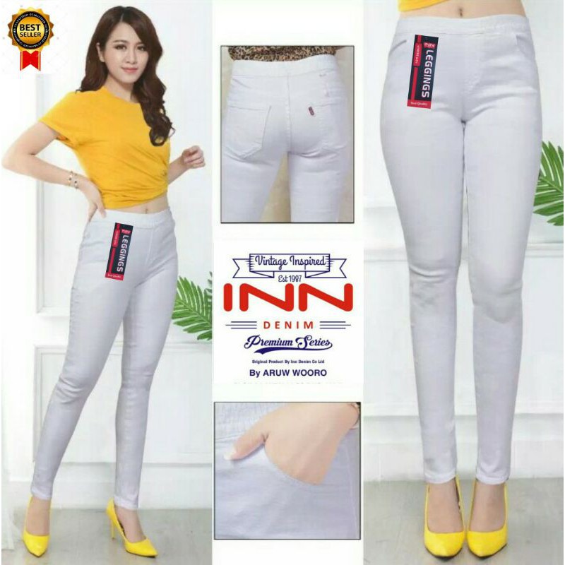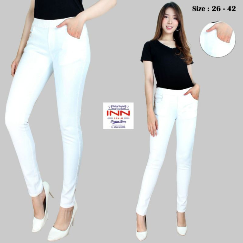 Harga Celana Jeans Wanita Warna Putih Pinggang Karet INN DENIM Legging Jeans Polos Fashion Terbaru Jegging