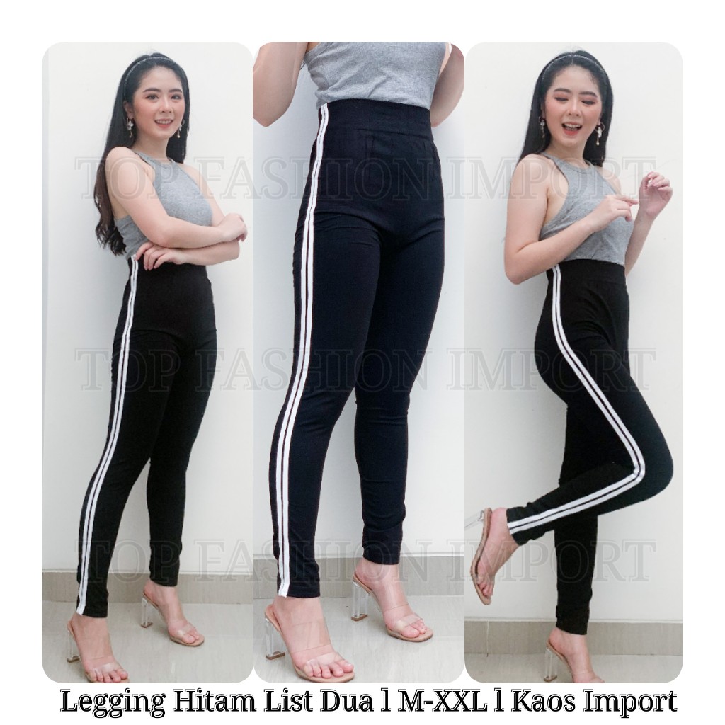 ( TERMURAH ) Legging List Dua Putih Premium Import Legging Wanita Legging Termurah Legging Terbagus
